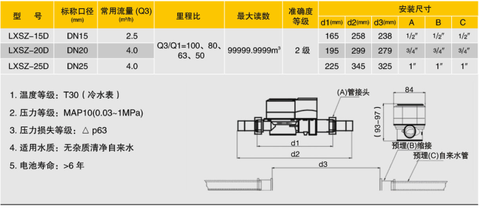 1.基表符合GB/T 778-2007《飲用冷水水表和熱水水表》國(guó)家標(biāo)準(zhǔn)
